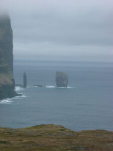 So fahren wir z.B. von Eiði über die landschaftlich reizvolle und kurvige alte Gebirgsstraße direkt nach Funningur (vermutlich Ort der ersten Ansiedlung auf den Färöer Inseln), nur weil ich darüber was gelesen hatte, statt zuerst nach Gjógv. Beide Orte besichtigen wir wegen des Wetters nicht so ausgiebig. Die Mehrstrecke beträgt ca. 6 km. Von Funningur geht’s über die Küstenstraße Nr. 60 wieder südwärts nach Funningsfjørður, dann nach links die andere Seite des Fjord entlang wieder nach Norden auf der Nr. 62 nach Elduvík, wo die Straße jedoch endet.
