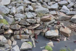 Es gibt einige alte, verrostete Überreste ehemaliger Befestigungen zu sehen und natürlich Vögel. Aber leider keine Seehunde, da das Wetter heute keine sonnengewärmten Felsen zum verweilen im Angebot hat.