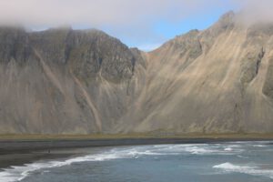 Nach dem Einkauf suchen wir im Internet nach Informationen zu der besagten Schluchtwanderung. Nach der Sichtung und Lektüre einiger Beiträge und Bilder dazu, entschließen wir uns darauf zu verzichten. Wir fahren statt dessen auf die Landzunge Stokksnes mit dem gleichnamigen Leuchtturm hinaus, die wir vor zwei Jahren (2022) ausgelassen haben.