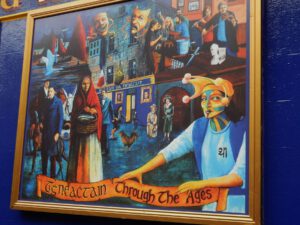Die Inschrift unter dem Riesen bezieht sich auf den Namen Connemara (Nachkommen einer frühzeitlichen Stammesgruppe) und insbesondere die letzte Zeile spiegelt ebenfalls irischen Sinn für Humor wider: