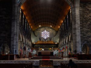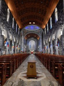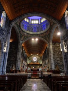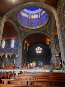 Ehe wir den Ort am Nachmittag in Richtung eines unserer Hauptziele – Connemara – verlassen, besuchen wir gegen 15 Uhr noch die Kathedrale St. Mariä Himmelfahrt. Das imposante Bauwerk wirkt älter als es in Wirklichkeit ist. Es handelt sich um einen sehr späten Bau der Neoromanik, der zwischen 1958 und 1965 erbaut wurde und die katholische Gemeinde fast in den Bankrott getrieben hätte.