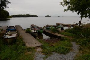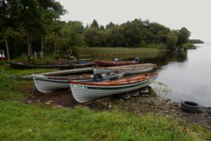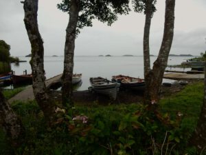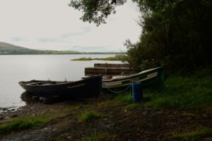 Um einmal direkt ans Ufer zu gelangen, zweigen wir bei Oughterard von der N59 ab und finden uns nach etwa zwei Kilometern am Ufer an einem Pier wieder. Ruderboote liegen am Wasser, die Namen tragen wie „Nonaim“ oder „Magie“ .