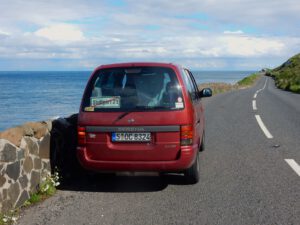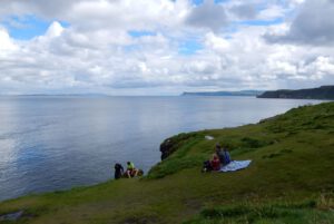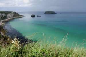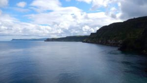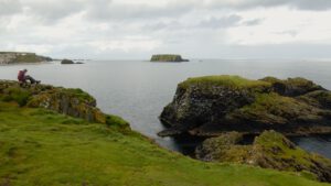 Jetzt begleitet uns strahlender Sonnenschein entlang der nordirischen Küste und gegen 15 Uhr machen wir nochmal Pause an einem Parkplatz nah am Meer und vespern recht gemütlich. Zu gemütlich, wie sich später herausstellt.