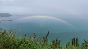 Als die Sicht endlich wieder hergestellt ist, folgen wir weiter der Küstenroute in Richtung Larne. Um 16:30 Uhr geht unser Schiff. Denn anders als der Riese Finn können wir nicht trockenen Fußes über den Damm (Giant’s Causeway) nach Schottland spazieren und schon gar nicht mit dem Auto rüber fahren. 🙂