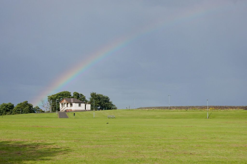 Was soll’s, es ist nicht zu ändern. Im Hafenbüro konnte ich unser Ticket auf die nächste Überfahrt um 20 Uhr umbuchen. So haben wir nun also rund drei Stunden Zeit um die Stadt zu besichtigen und zu shoppen. Die Mainstreet in Larne stellt sich allerdings als etwas öde heraus, vieles schließt bereits um 17 Uhr. Wir kaufen etwas Brot und Obst und bringen es zum Auto. Dann setzen wir unsere Stadt-Erkundung zu Fuß in der anderen Richtung fort. Wir finden einen hübschen Park und setzen uns dort in die Sonne.
