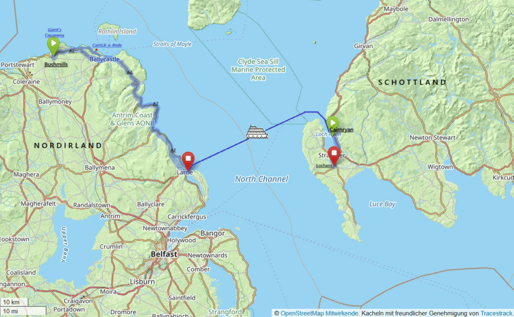 Zwar sind es von Larne aus nur noch rund 25 Kilometer bis in die nordirische Hauptstadt Belfast, aber dafür (wie auch für irische Hauptstadt Dublin) reicht unsere Zeit leider nicht.