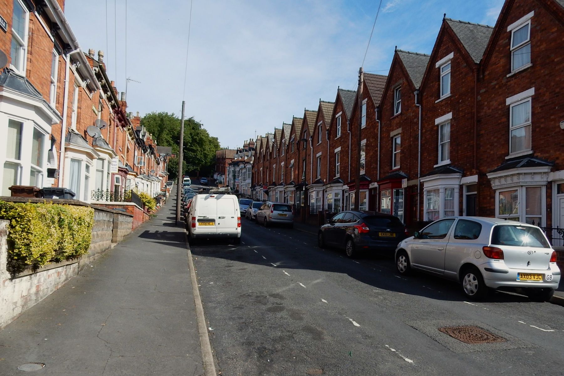 eine Straße voller schmaler Backsteinhäuschen