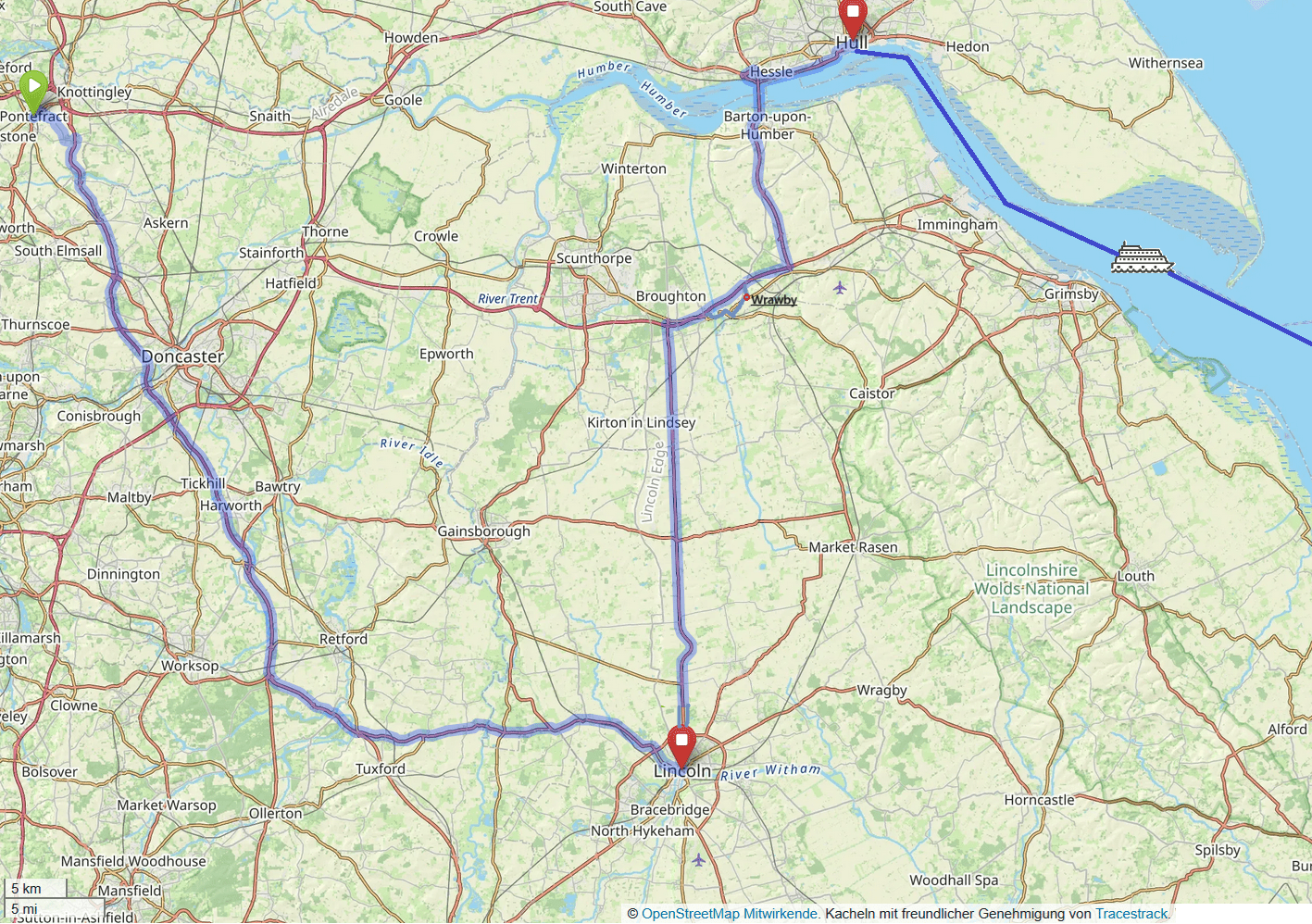 Um 16:30 Uhr kommen wir in Kingston upon Hull an. Das ist gut so, denn das ist exakt zwei Stunden vor Abfahrt, wie gefordert. Und wir wollen ja nicht nochmal (wie in Larne) unser Schiff verpassen. 😉