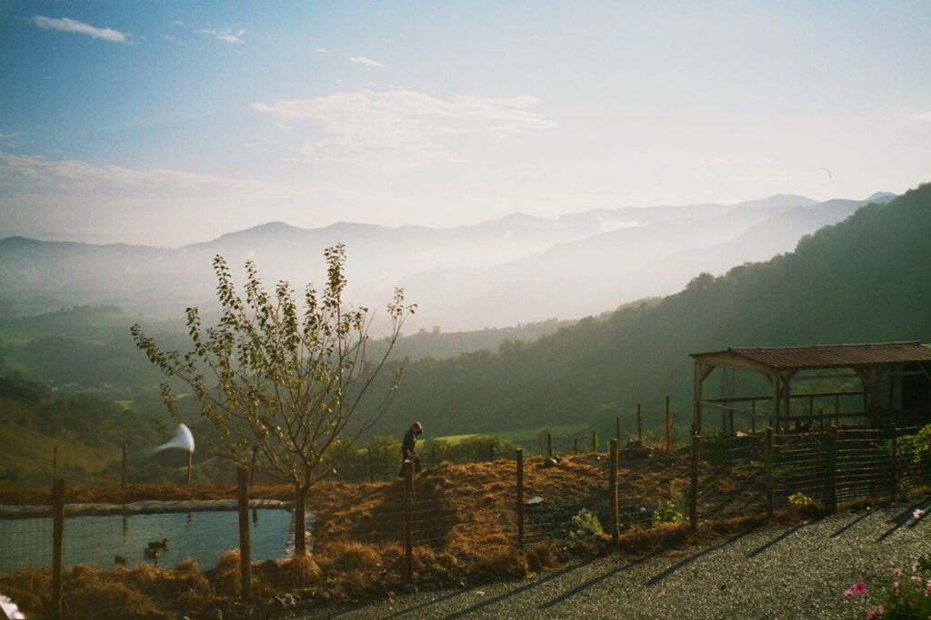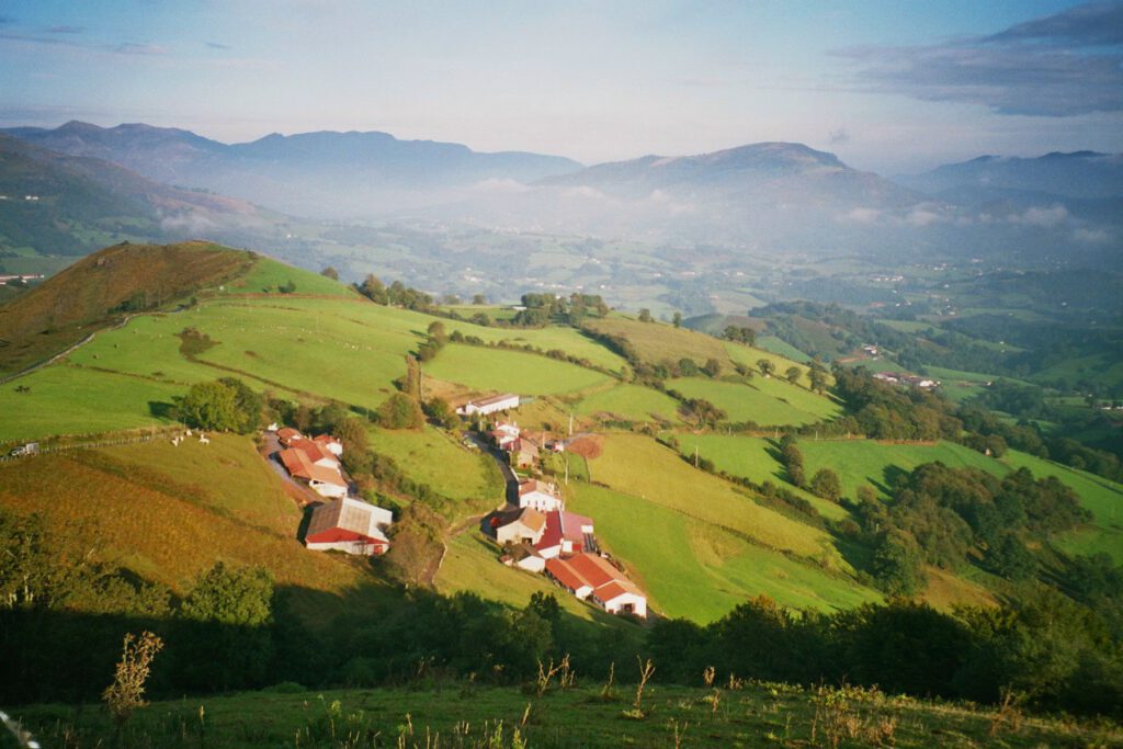 Die Sonne kriecht über die Berge und trocknet mit ihren wärmenden Strahlen die nasse Welt. Die Wolken heben sich aus den Tälern empor und verflüchtigen sich allmählich. Ein wundervoll majestätisches Panorama bietet sich mir, als ich die Häuser der Herberge Fermé Ithurburia hinter mir lasse und schon nach wenigen Metern Aufstieg über sie hinwegblicken kann.