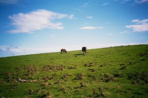 Ich stelle erstaunt fest, dass ich meine Brille nicht zu tragen brauche. Ich bin eigentlich kurzsichtig und trage daher normalerweise eine Brille, um Dinge die weiter weg sind deutlicher zu erkennen. Hier, in der Weite der Landschaft, wo meine Augen nicht dauernd die kurze Blick-Distanz zum Schreibtisch oder einem Computer-Bildschirm haben, also auch keine Hindernisse im Blick sind, komme ich gut ohne Brille klar. Die Augen gewöhnen sich an mehr Fern-Distanz und ich sehe klar und deutlich. Diesen Eindruck hatte ich auch schon gestern, als ich wegen des Regens die Brille abnahm. Das gefällt mir. 🙂