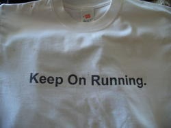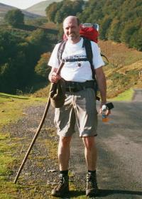 Das bin ich (Peter), so sehen mich ab jetzt die Menschen auf dem spanischen Jakobsweg, dem Camino Santiago (auch Camino Francés). Das T-Shirt mit dem Aufdruck “Keep On Running.” ist das Shirt für die ebene Strecke und ein Geschenk einiger sehr guter Freunde. Eines meiner zwei T-Shirts. Ich trug es etwa die Hälfte aller Tage. Das “Don’t loose that feeling !” Shirt schenkte mir mein bergbegeisterter Vater und ich trug es meist, wenn es in die Berge ging. Also etwa die andere Hälfte der Zeit.