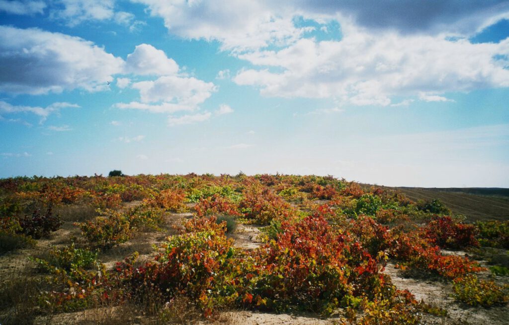 Danach führt mich der Weg entlang an niedrigen Reihen von Rebstöcken, deren Trauben bereits sehr reif sind und deren Blätter sich bereits rötlich verfärben. Ich erlaube mir, zum Zwecke der „Qualitätsprüfung“ ein paar der Trauben zu pflücken oder aufzulesen, die am Wegesrand liegen. Sie sind sehr lecker! – Das wird sicher ein guter Jahrgang 😉