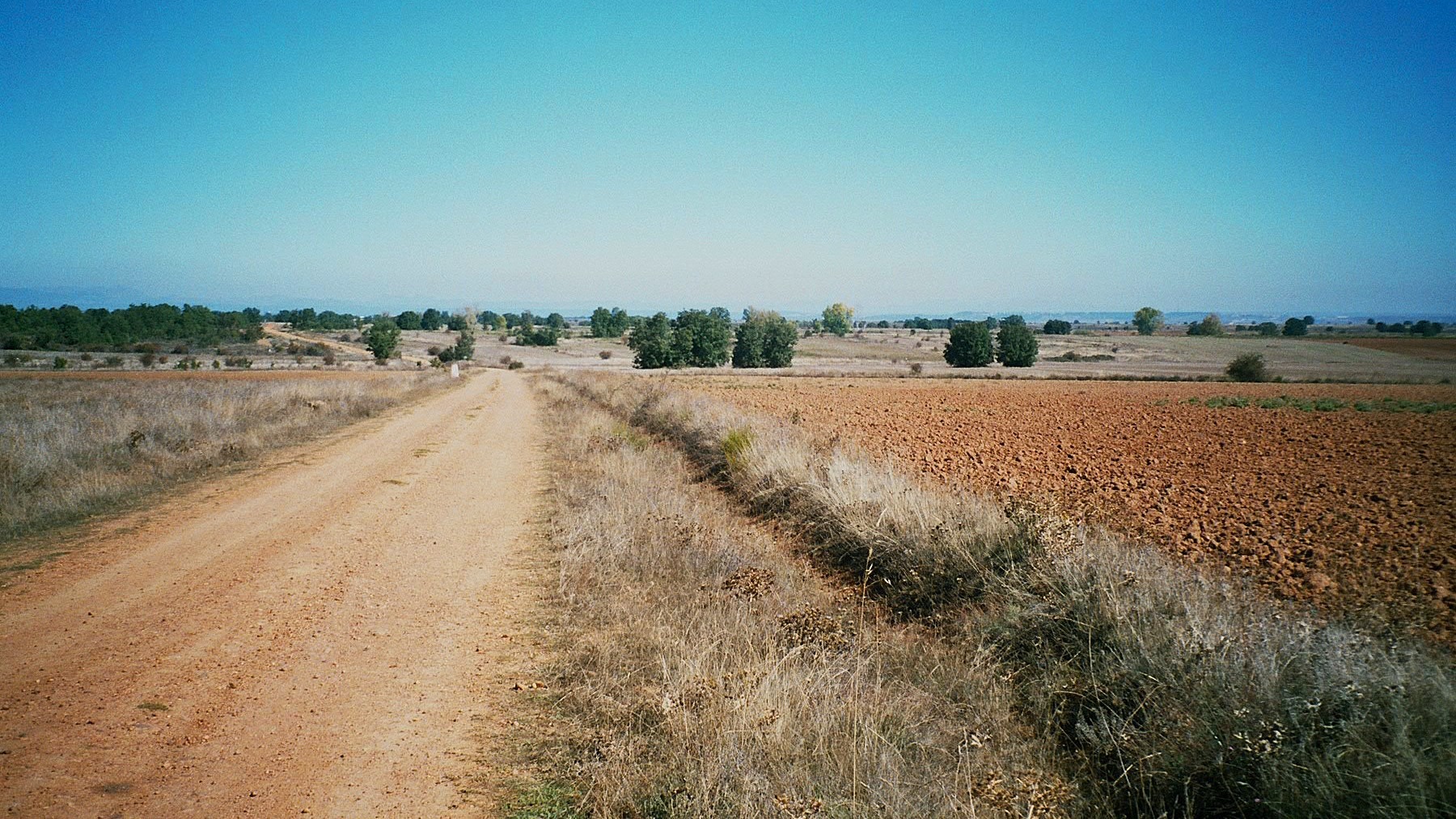 Am Ortsausgang von León erleichtere ich mich kleidungsmäßig etwas, da die vom wolkenlos blauen Himmel strahlende Sonne dafür sorgt, dass es mir schon bald zu warm wird. Nach etwa drei Kilometern legen wir in Virgen del Camino gleich nochmal ’nen Café con leche nach, diesmal auch mit „Teilchen“ 🙂
