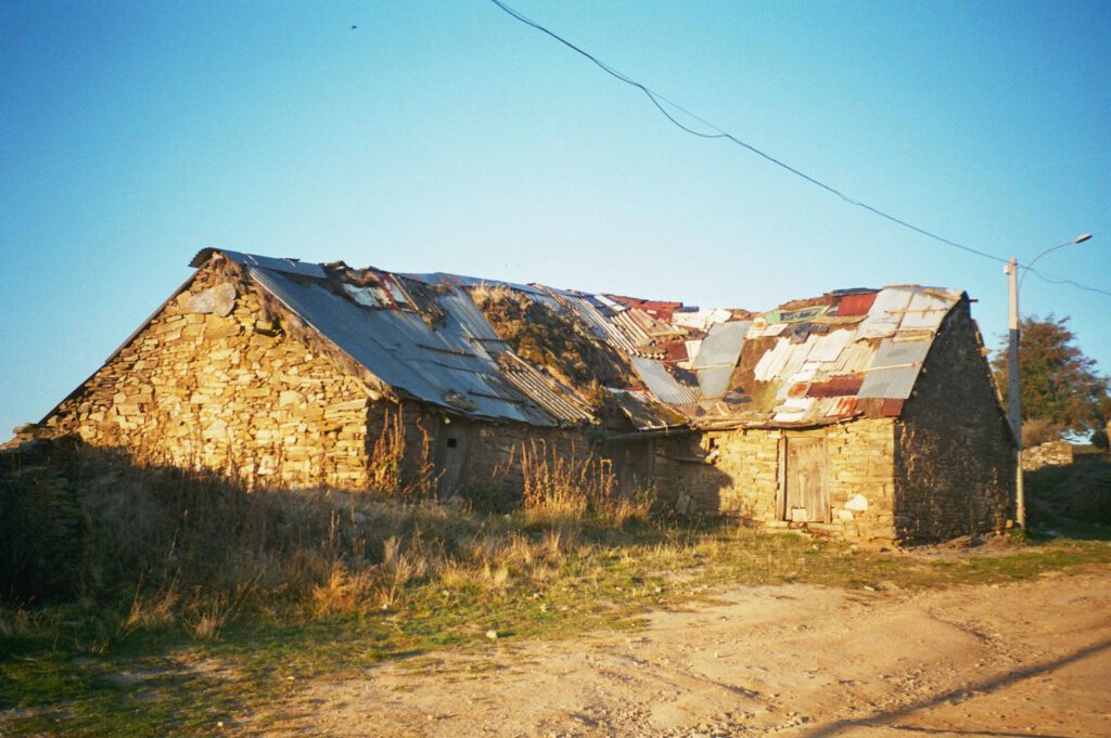 Obwohl das Dorf einen überwiegend verfallenen und verlassenen Eindruck macht, gibt es hier doch ein paar bewohnte Häuser und sogar ein geöffnetes Café.