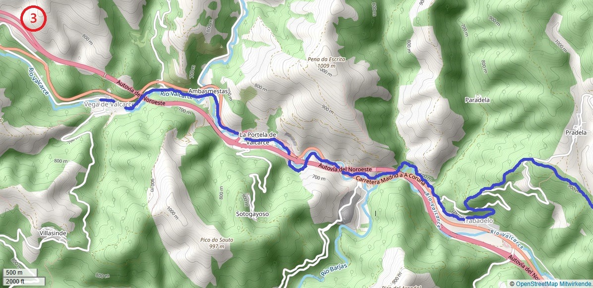 Kurz bevor ich den Ort Vega de Valcarce erreiche, lege ich nochmal eine kurze Rast bei „La Portela de Valcarce“ ein. Früher war das mal ein eigenständiges Dorf, inzwischen gehört es zur Gemeinde Vega de Valcarce. Es liegt auf einem Sattel am Übergang zwischen zwei Tälern. Der Namensteil „Portela“ bedeutet in etwa „kleines Tor„. – Ein wenig mehr über den Ort ist hier beschrieben.